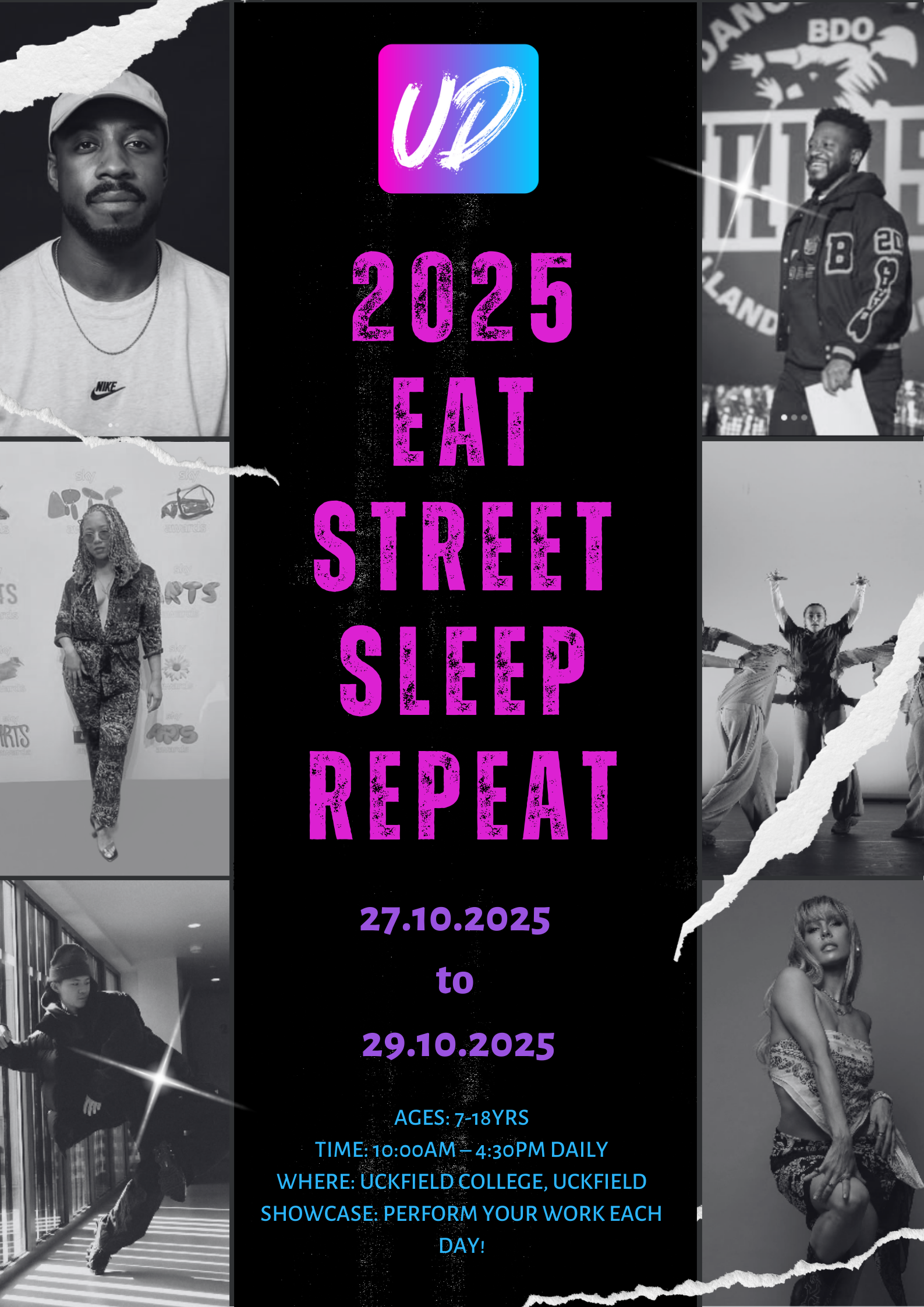 Eat, Street, Sleep, Repeat is a one-of-a-kind 3-day Hip Hop Dance Camp bringing you six professional artists, six unique styles, and six 2.5-hour workshops filled with choreography created exclusively for your child.